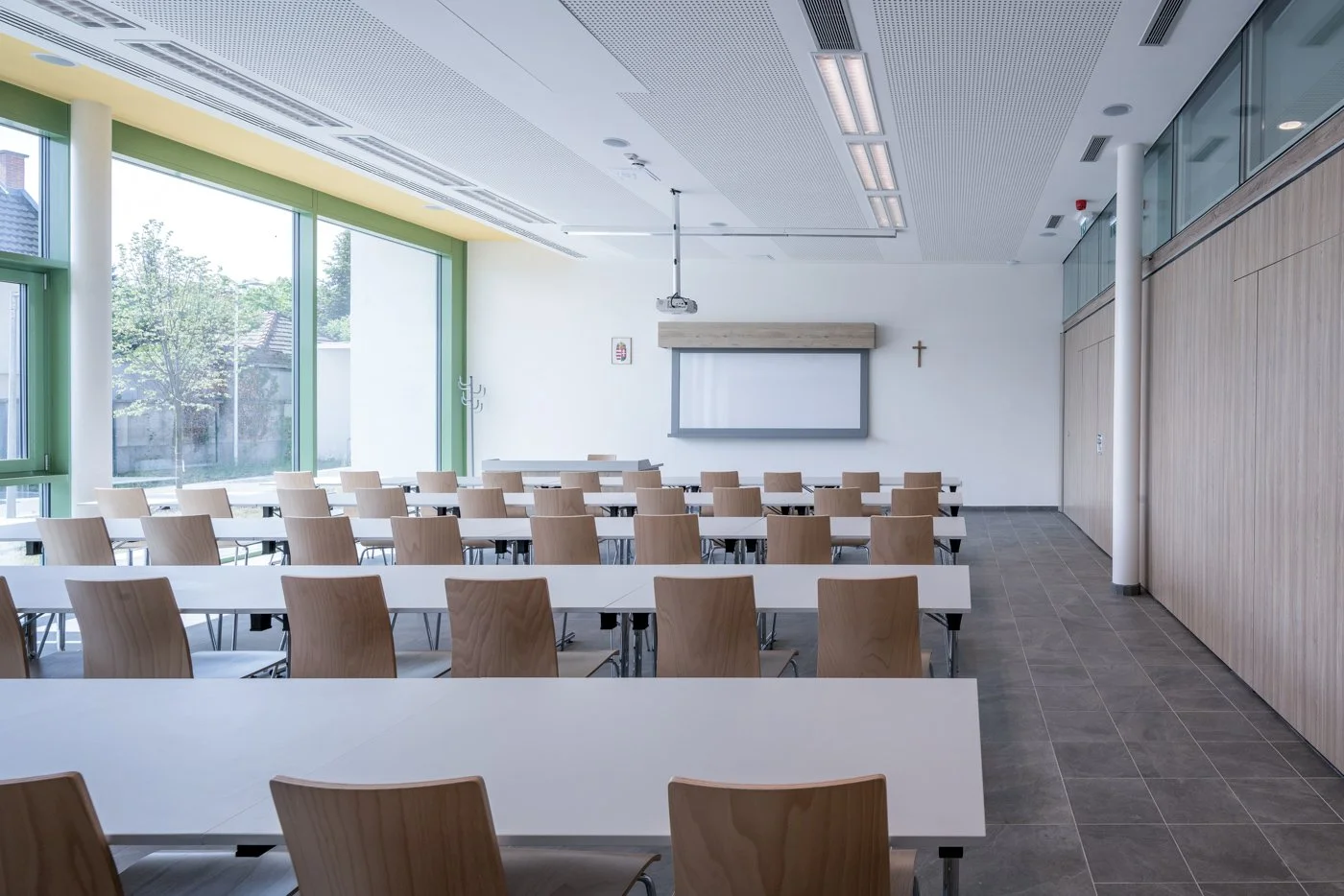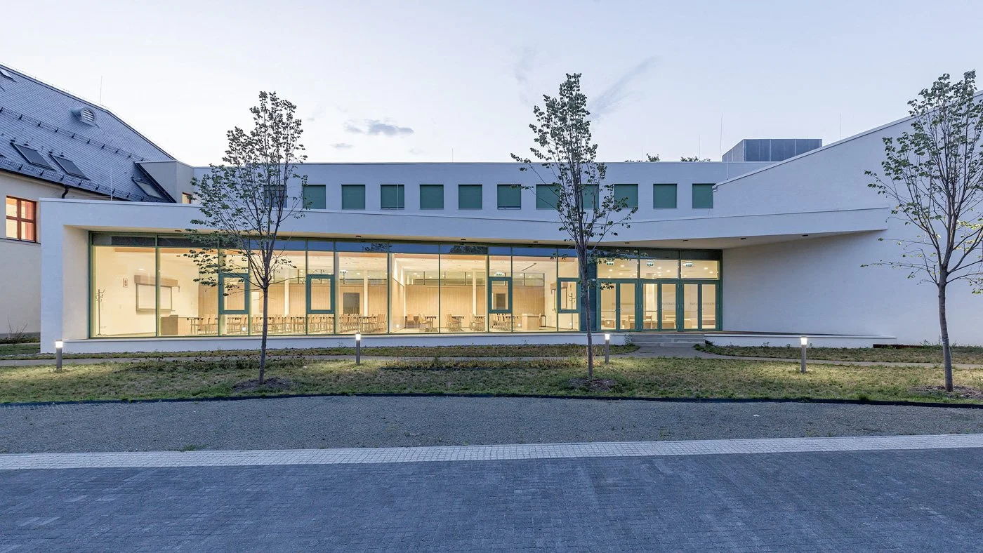 “A tervezett campusban egyszerre jelenik meg a múlt és a jelen, részint az örökölt épülettömb, részint a helyszínen talált emlékek átertelmezésével. A sok megkövetelt funkció, a régi és az új kollázsa mégsem szaggatta darabokra a víziót. Ellenkezőleg: a heterogén épület egészségesen egyszerű és érthető maradt, ami a tervezők szabad felfogasú térkomponalásának, konstruktív észjárásának és elmélyült szerkezeti ismereteinek köszönhető.”