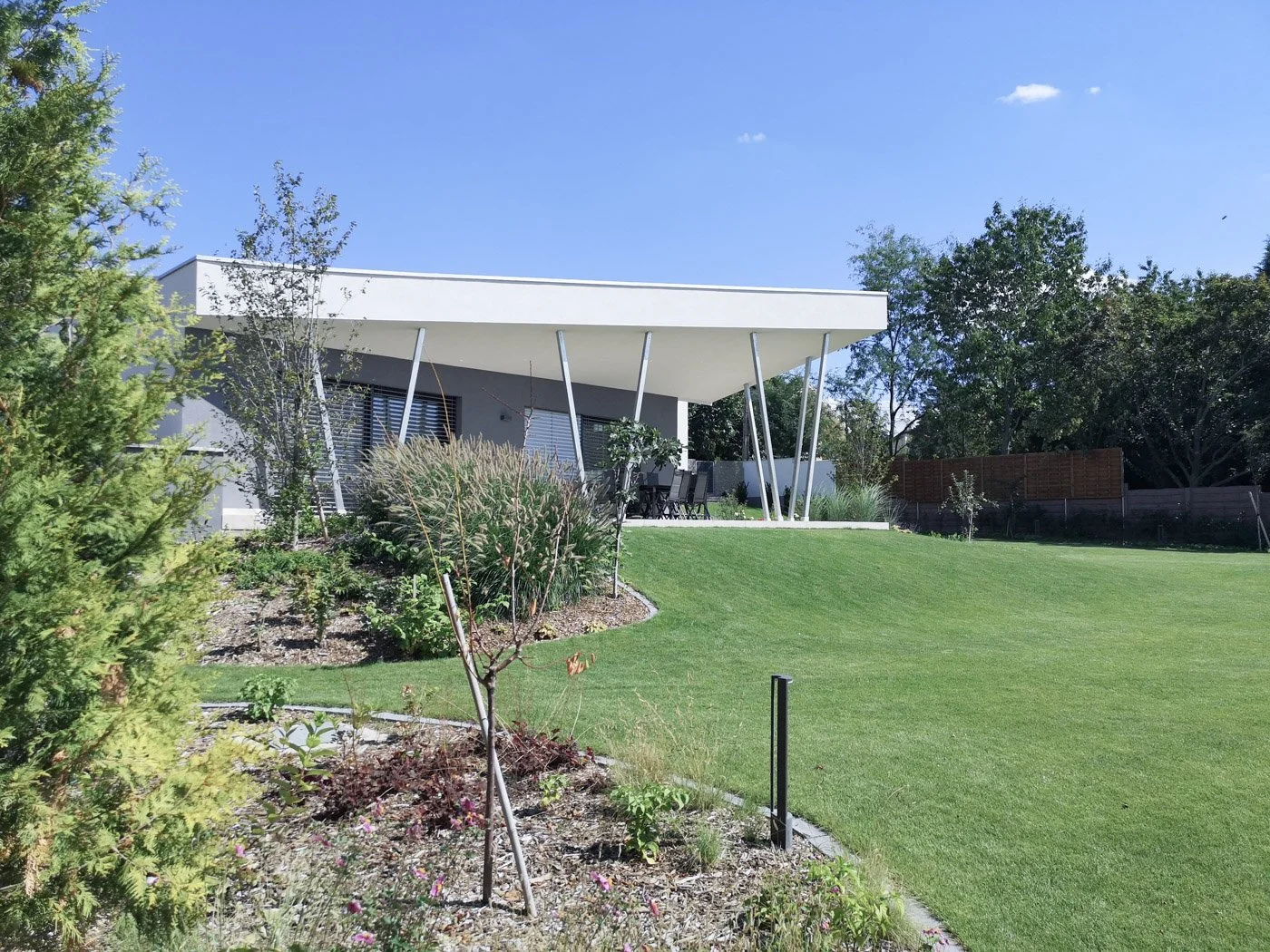 Massány Edina tájépítész rutinos profizmusát mutatja, ahogy a kert úgy van jelen egyszerűen természetes mivoltában, hogy nem tolakodó, mégis minden részletén érződik a gondos tervezés. Ilyenformán remekül megtalálták a közös hangot az épület tervezőjével.